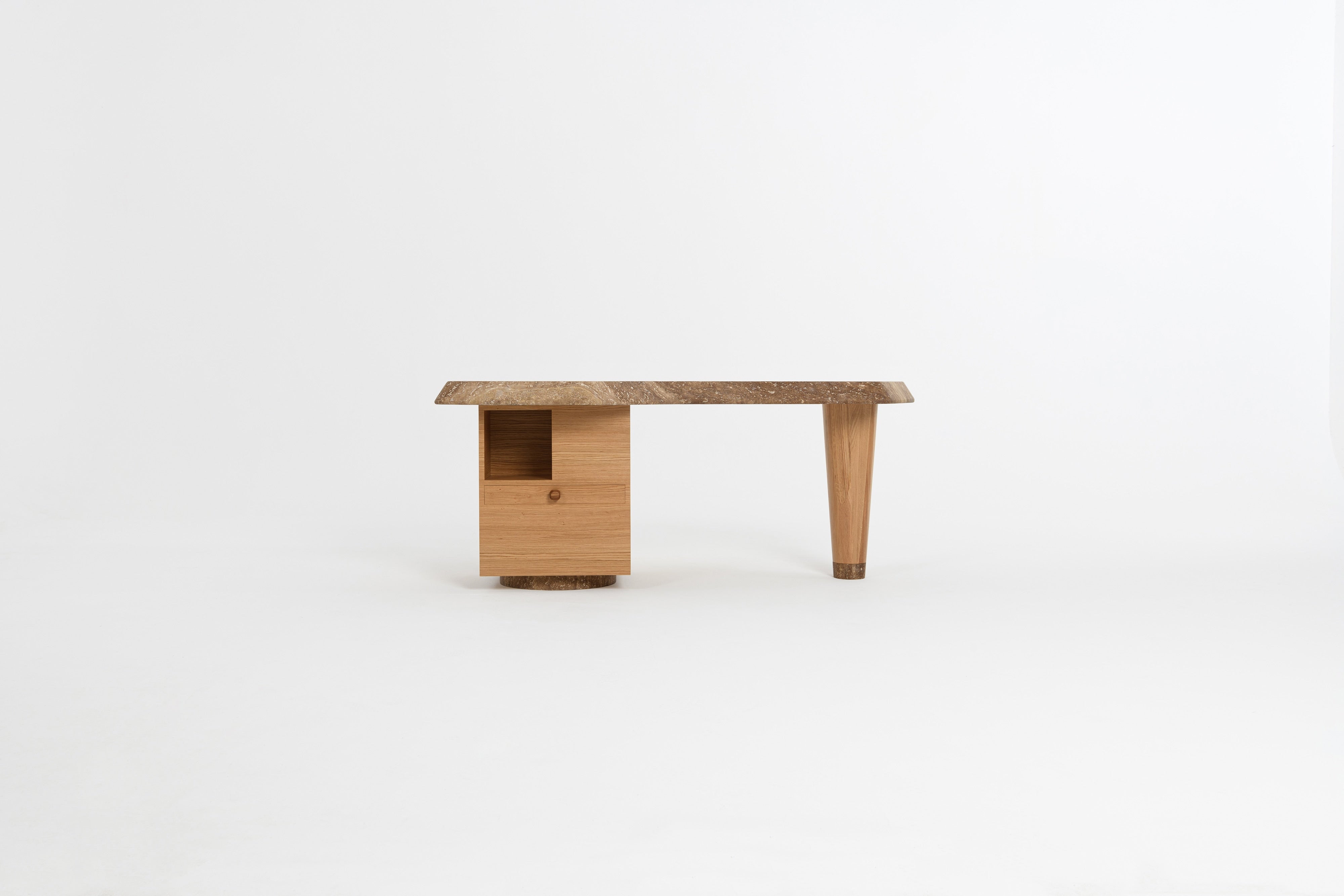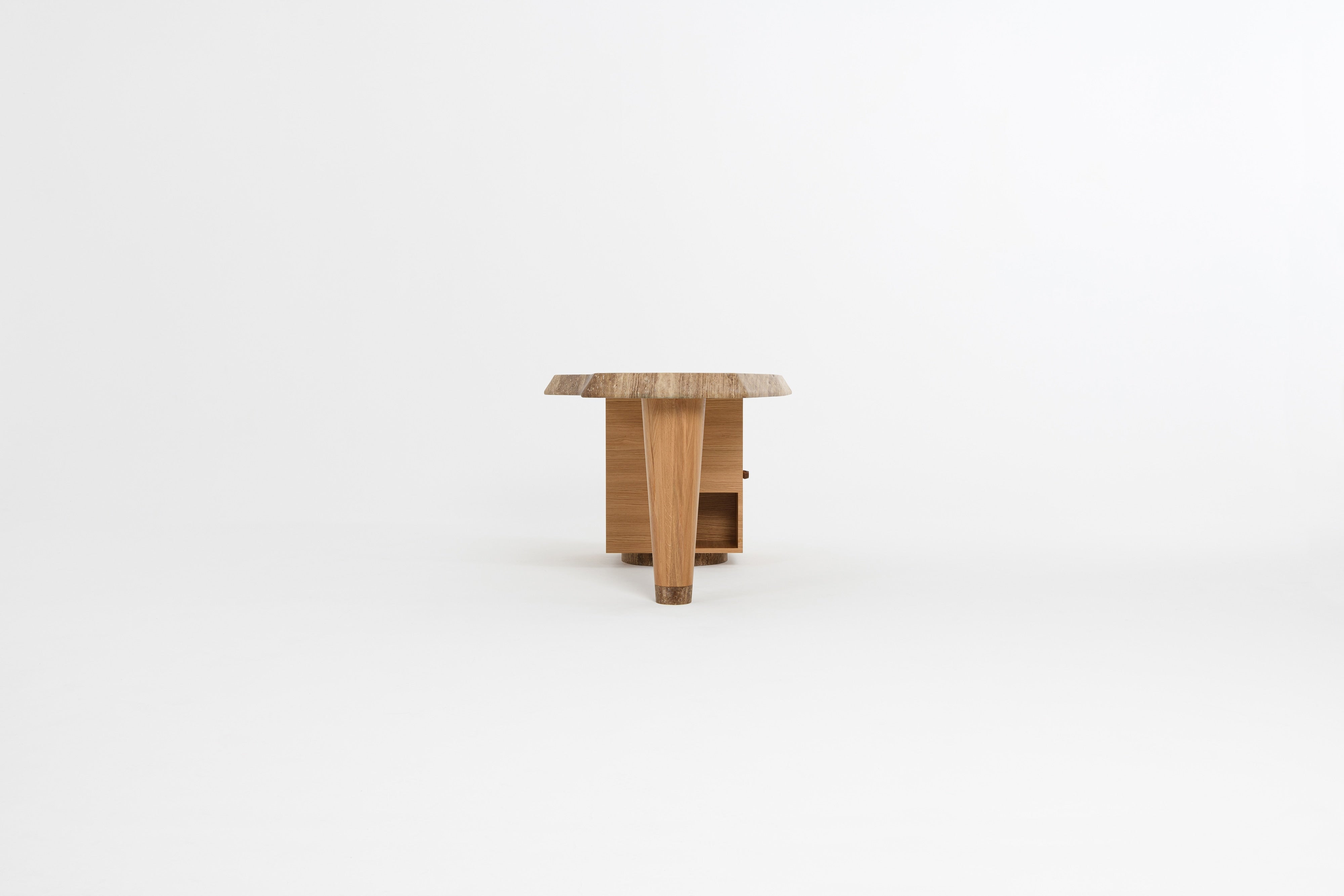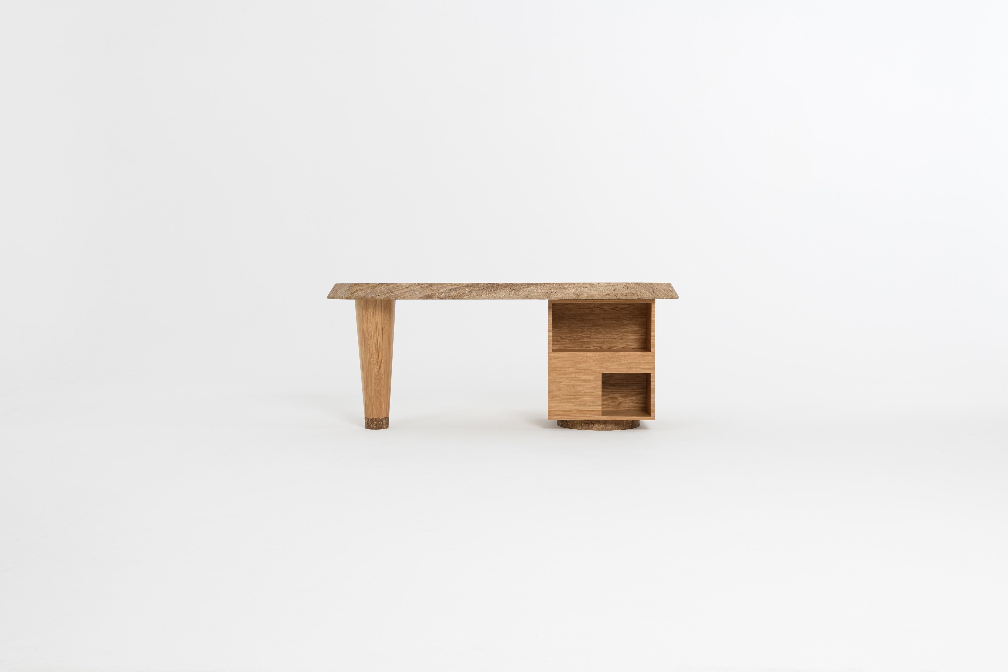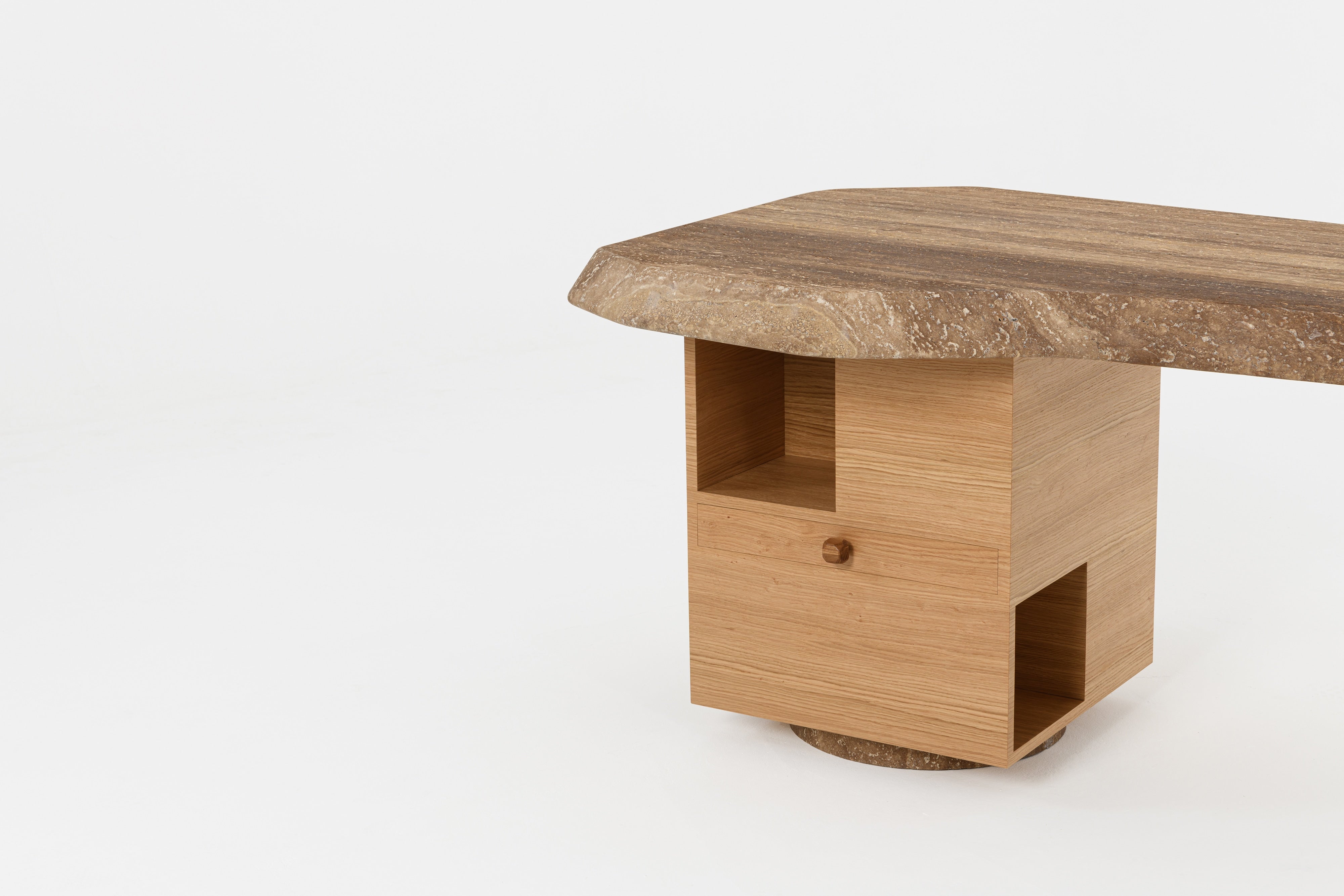 The Atlas Desk, part of the Atlas collection, embodies sophisticated design with its clean lines and organic curves. This elegant desk features a stunning travertine top, adding a natural yet luxurious touch to its sleek form. The Officium Desk seamlessly combines functionality with artistry, making it an ideal centerpiece for any modern workspace. Its travertine top not only enhances its aesthetic appeal but also provides a durable and refined surface. Perfect for those seeking a sophisticated and versatile piece, the Officium Desk brings together the best of Atlas desk design, offering a harmonious blend of style and practicality.