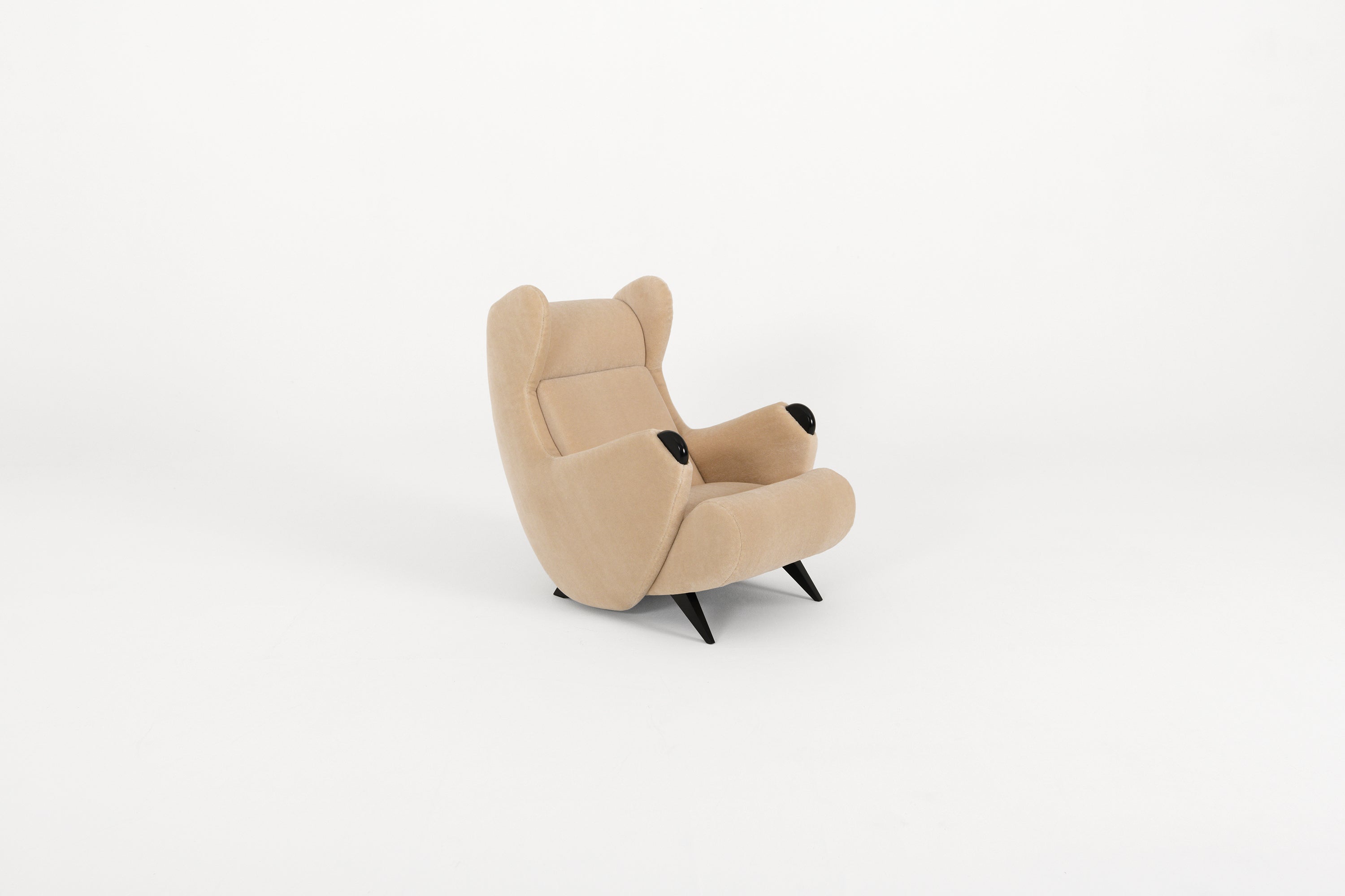The Cadillac armchair, first designed by Erton House in the 1950s, was beautifully reissued in 2021 by Pierre Augustin Rose. This classic piece combines both style and careful design, making it a perfect choice for any home. With solid oak legs and soft upholstery in Pierre Frey fabric, the Cadillac armchair offers both elegance and durability. The re-edition stays true to the original, blending creativity with precision. More than just a seat, this armchair is a statement piece that honors mid-century design while adding a modern touch to any space.