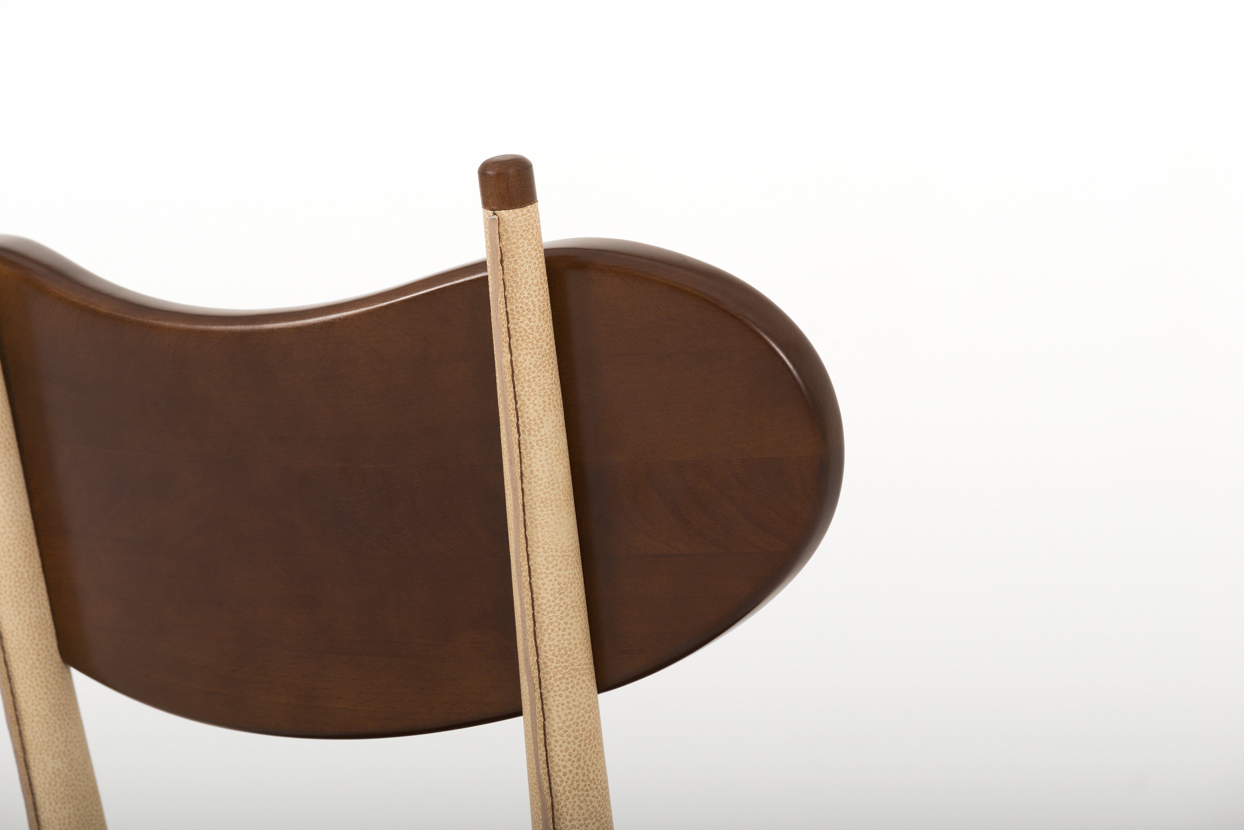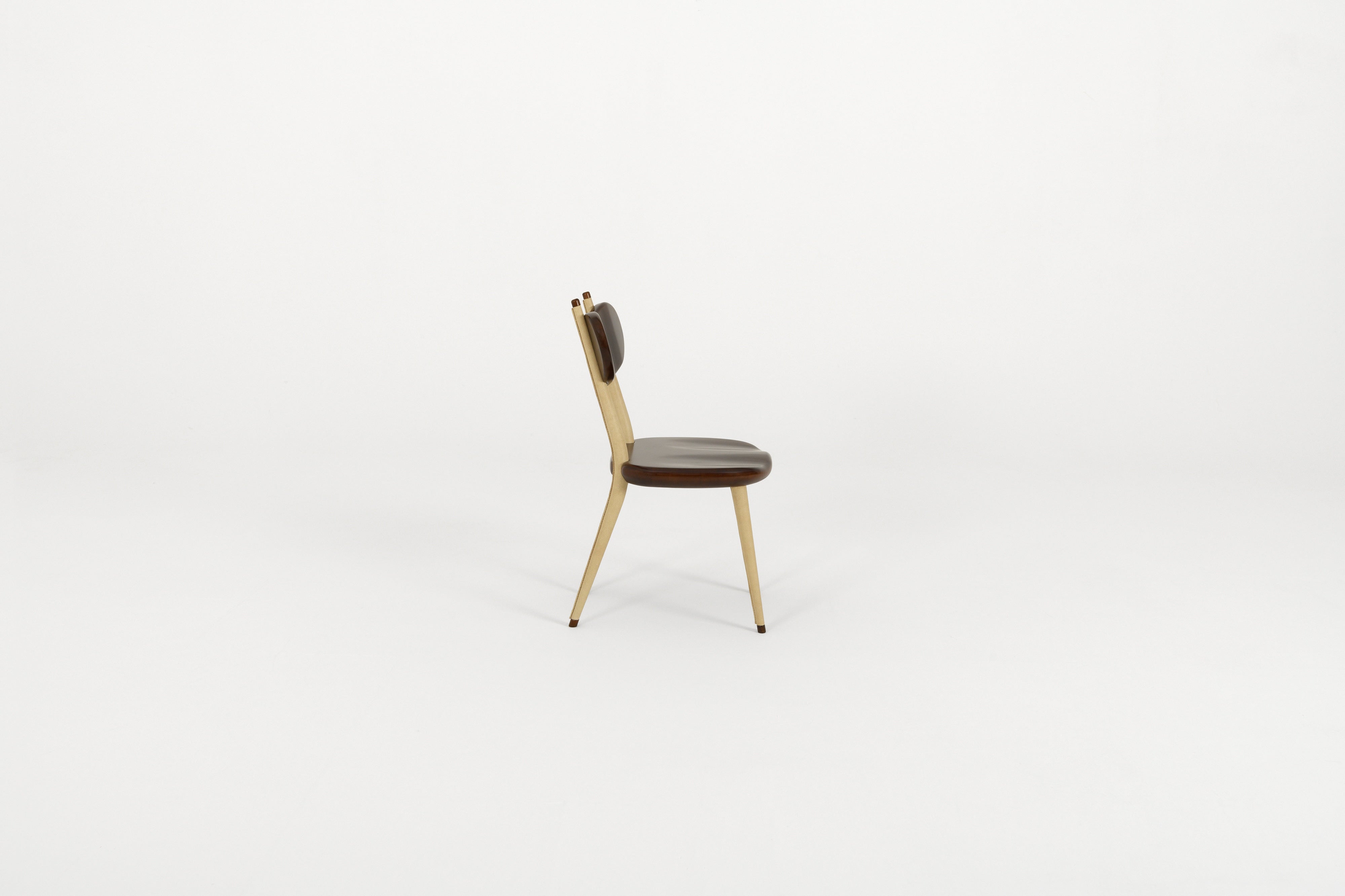 The Daphne Chair is a masterpiece of singular design, featuring a curved seat and backrest sculpted from solid stained birch.