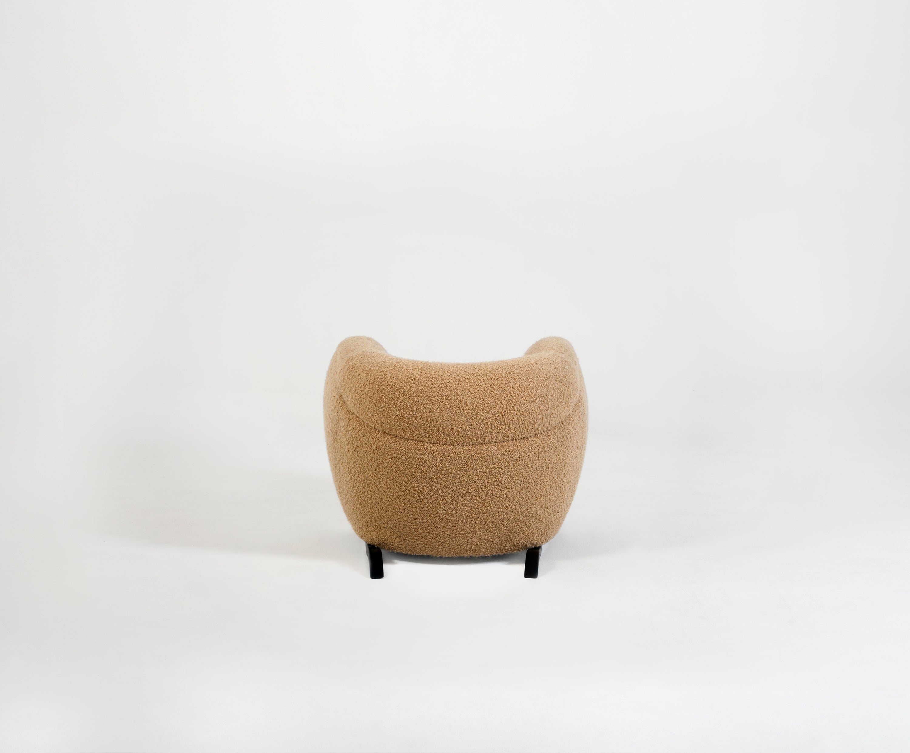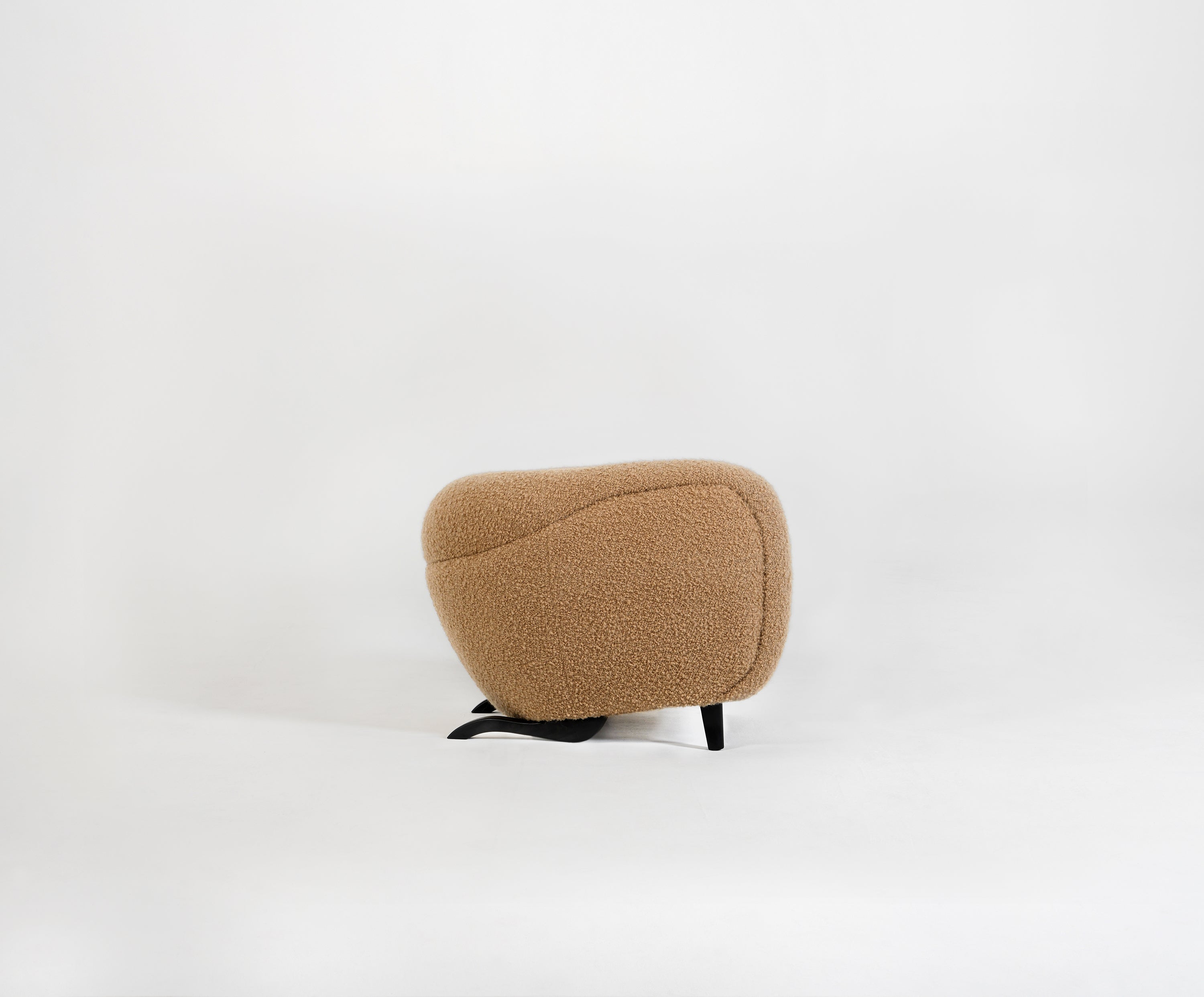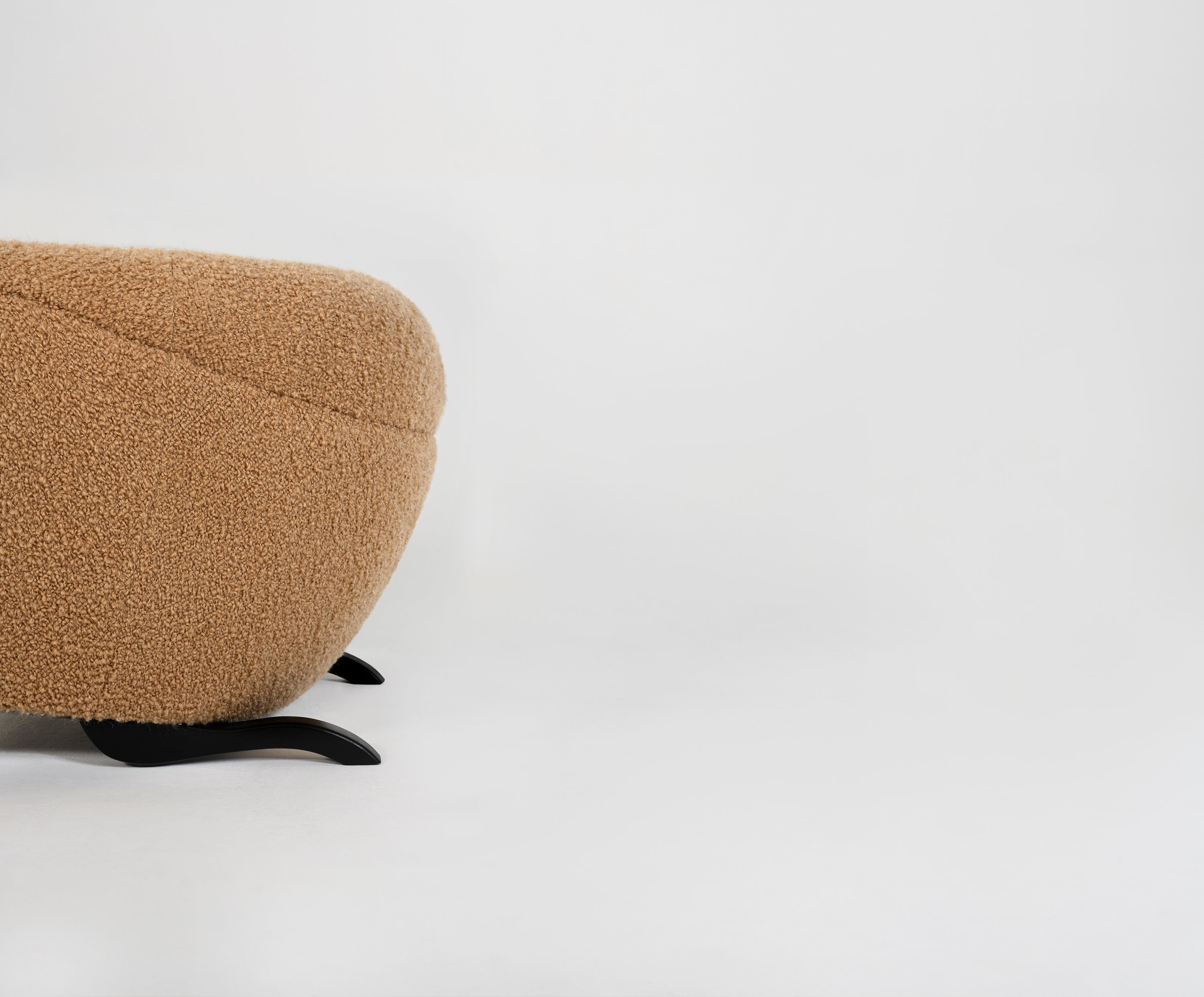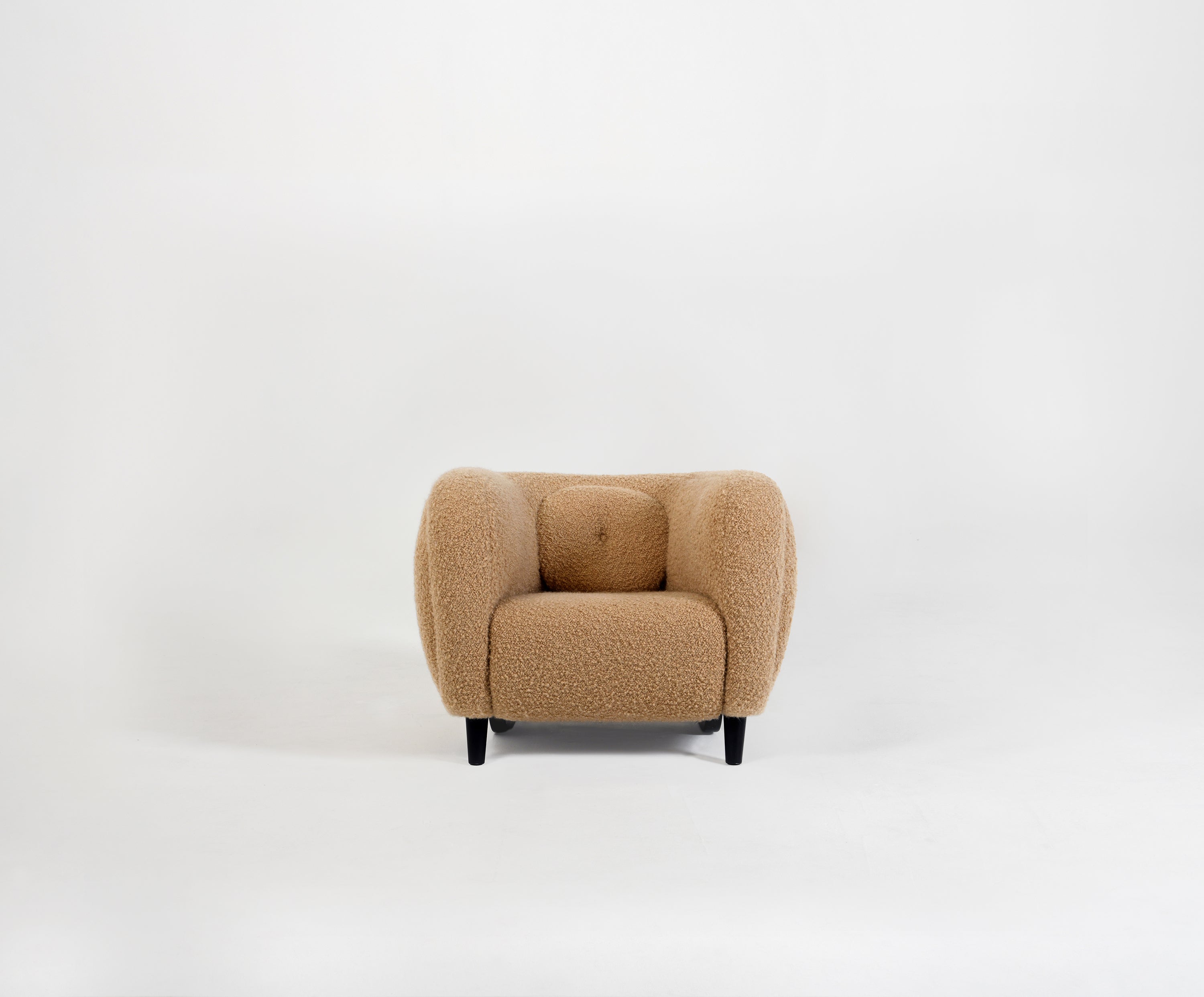 The Minitore Armchair is a masterful blend of art and comfort, embodying the essence of both myth and modern design. This round armchair features a bold, iconic silhouette that draws inspiration from Picasso’s imagination, with a nod to Italian design. The refined details include delicate stitching and sturdy front legs sculpted from solid oak, ensuring durability and elegance. Upholstered in luxurious Pierre Frey fabric, the Minitore offers optimum comfort that invites you to relax and unwind. This armchair is a statement piece, combining powerful aesthetics with a deep sense of comfort, making it a standout in any interior.