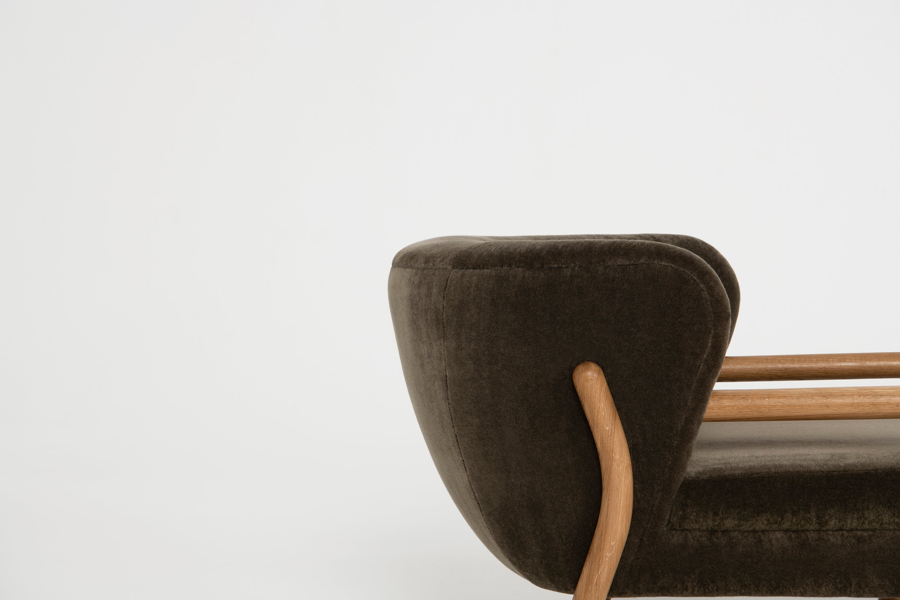 The Polus 016 Armchair marries sturdy craftsmanship with inviting comfort, creating an elegant yet practical seating option. The generously padded backrest curves gracefully, enveloping you in luxurious comfort, perfect for moments of relaxation. Supported by robust, sculpted oak legs, this armchair provides stability without sacrificing style. Upholstered in Pierre Frey’s exquisite fabric, the Polus 016 Armchair makes a bold yet elegant statement in any modern or classic interior. With its soft, rounded design and impeccable materials, it is an exceptional choice for those seeking both sophistication and comfort.