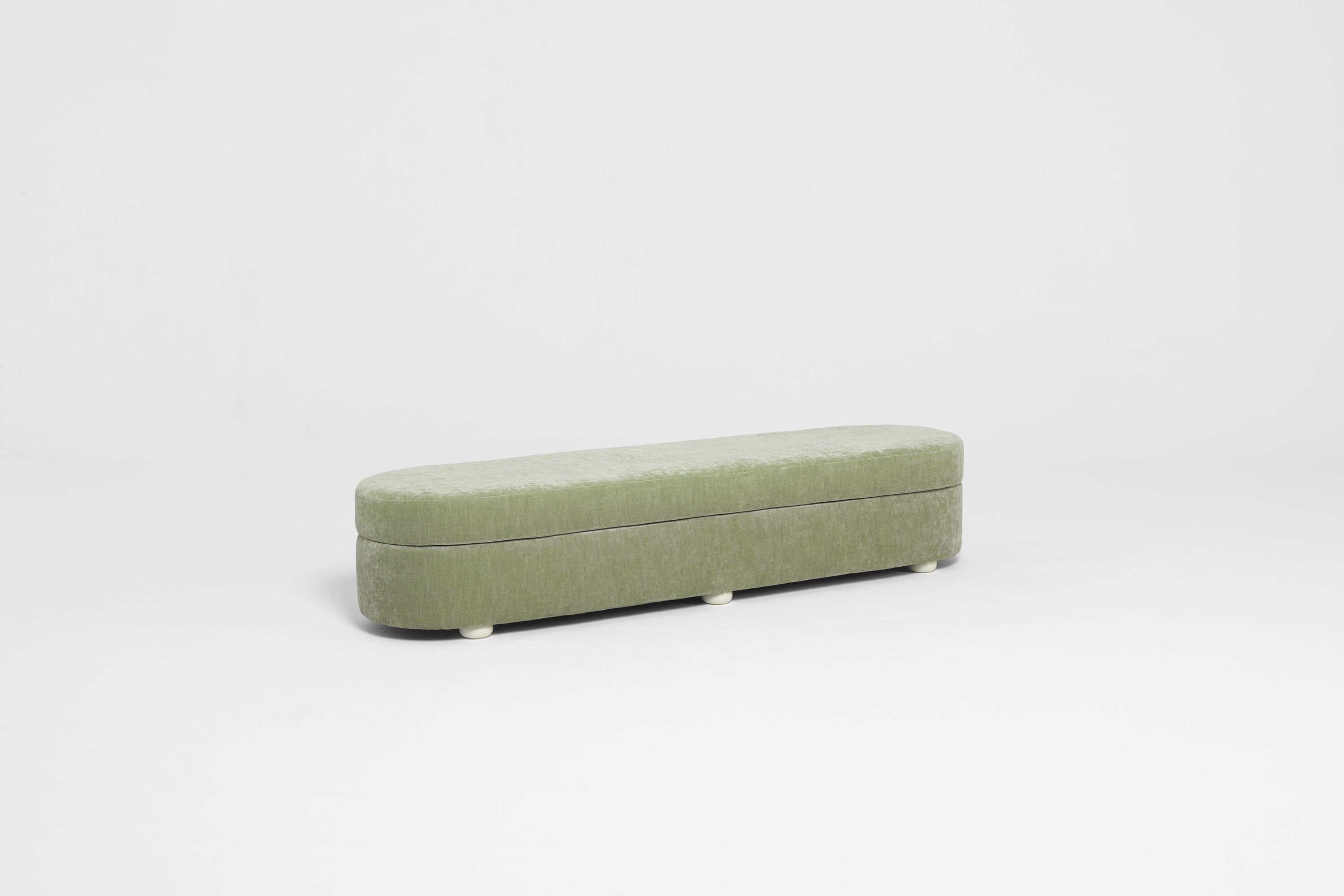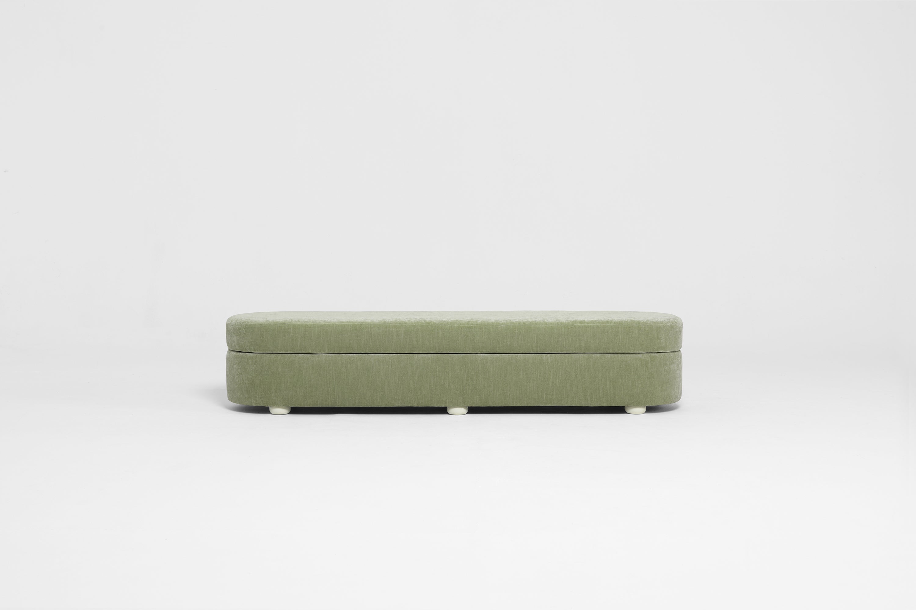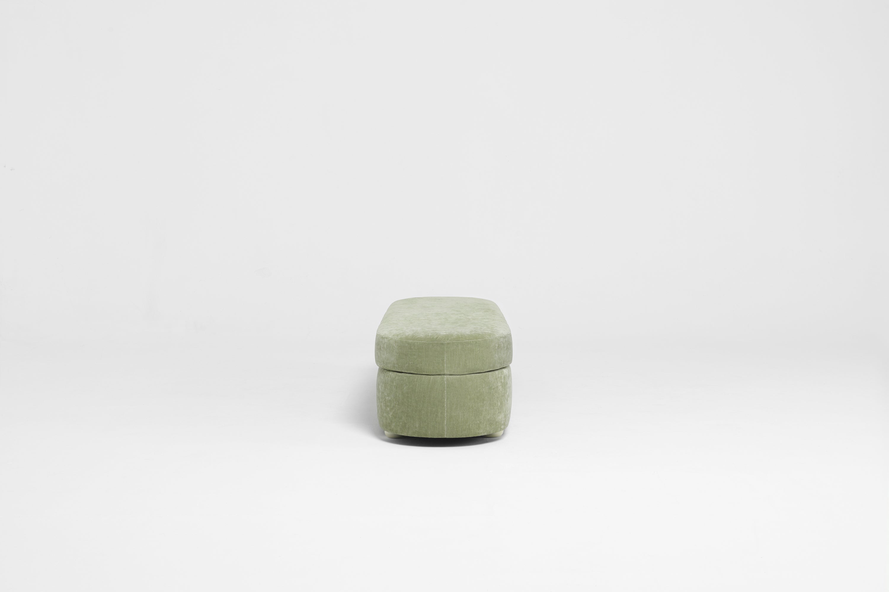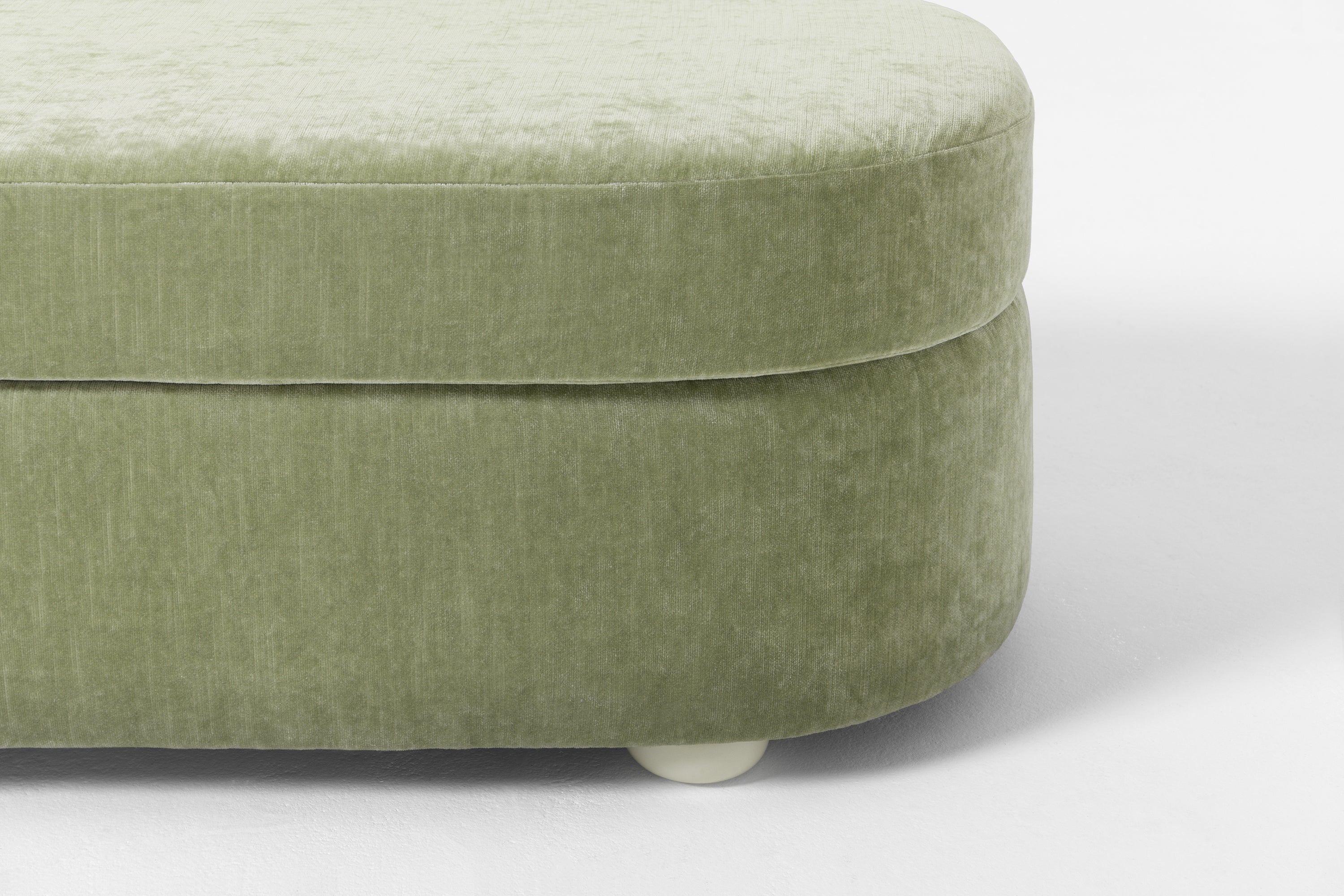 The Ritz Ottoman is a stunning piece that seamlessly blends versatility with elegance. Upholstered in luxurious Capri II velvet by Pierre Frey, its captivating giada hue enhances any space, radiating charm and sophistication. The ottoman's curved lines create a soft silhouette, inviting relaxation and comfort while adding a touch of modern design. Ideal for use as a footrest or extra seating, the Ritz Ottoman promotes harmony in both style and function. Crafted with attention to detail, this ottoman not only complements your decor but also elevates it, making it a must-have addition for those who appreciate luxury and refinement in their interiors.